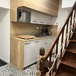 هناك منطقة المطبخ الصغير المجهز مع البرَّاد وأدوات المطبخ في بيت العطلات.